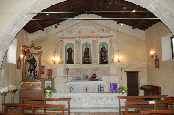 Sita lungo Via per Frosinone, a poca distanza dalla stazione ferroviaria fabraterna, la chiesetta dedicata al Comprotettore della città di Ceccano, San Rocco, il cui culto è presente in città fin dall’inizio del XVII secolo, è stata costruita nel XVIII per volontà della popolazione. Originariamente dedicata alla Madonna di Loreto, ospita oggi il culto di San Vito e, in maniera particolare, di San Rocco, santo a cui i ceccanesi sono particolarmente devoti a causa, probabilmente, della pestilenza che afflisse la popolazione nel 1630. È considerato da sempre un luogo pio anche grazie alla presenza di un eremita che abitava nella costruzione retrostante la chiesa, luogo oggi in possesso di privati, come lo è l’antico lazzaretto annesso. L’interno, molto semplice, è arricchito dalla balaustra in marmo messa a protezione del presbiterio, realizzata insieme all’altare nell’Anno Santo 1950, e dal trittico realizzato sulla parete di fondo dietro l’altare costituito da tre nicchie contenenti ognuna una statua lignea, la prima a destra di San Vito, del XVI secolo, quella al centro della Madonna di Loreto, anch’essa del XVI secolo, e quella di sinistra, per anni vacante, di San Pio da Pietralcina, che ha invece una fattura recente. In precedenza la nicchia di sinistra ospitava la statua di San Rocco ed era stata per questo modificata in altezza per adattarsi alle dimensioni della scultura. Oggi la nicchia presenta le dimensioni originali e la statua di San Rocco è stata posta al di sopra di un basamento in legno, protetta dalla macchina processionale.